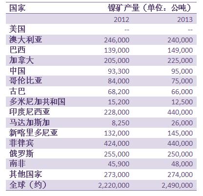 镍矿资源分布及年产量