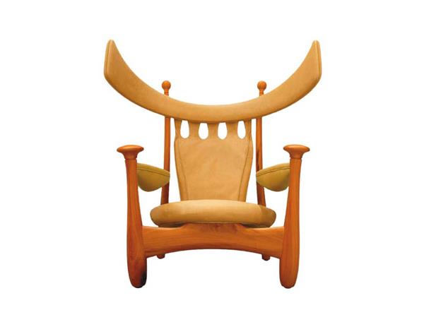 这是由Sergio Rodrigues设计的样子怪怪的椅子,它与轻松的巴西生活方式和生活态度有关,有意思的座椅由雕塑般的美感和有机的起伏线条定义。设计师以在设计中加入幽默感出名,八十四岁高龄的设计师对于此系列椅子的设计也不例外,它看上去像不像是对于一头愤怒的公牛的幽默理解。