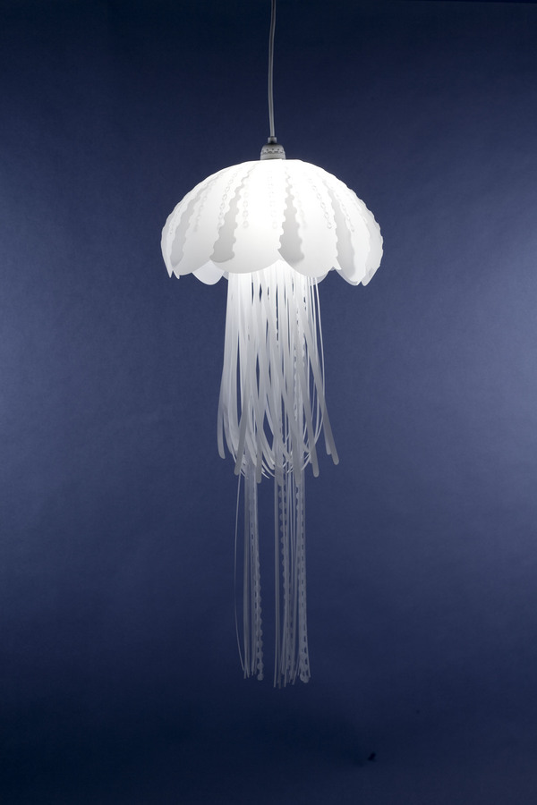 海底世界有很多美丽的生物,水母便是其中只有一,设计师Roxy Towry-Russell的这组灯具设计灵感便来源于水母,柔和飘逸的乳白色主体加上底部形态各异的长长流苏,如游弋着的水母般飘逸灵动,让人仿佛置身于海底世界,这样一盏华丽的美灯放在居室里,一定非常浪漫。这个不同寻常的设计会让您的家里看起来像海底世界,如果你喜欢...