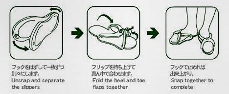 超便携拖鞋设计,不穿时可以展开成平板放进背包、行李箱里,甚至电脑包里装下它都没问题,泡沫材质重量轻携带无负担,需要穿着时则只需将两端向上弯折并扣到一起,只需几秒一双拖鞋就炼成了。在提倡绿色环保很多酒店都已不提供一次性拖鞋的今日,常出差的旅人想必会用得到这样的装备。