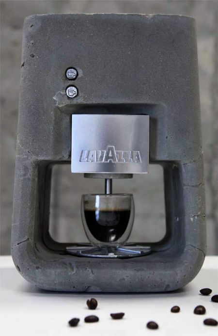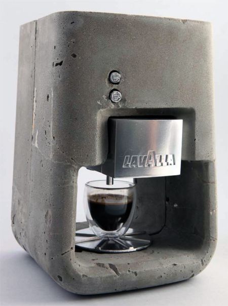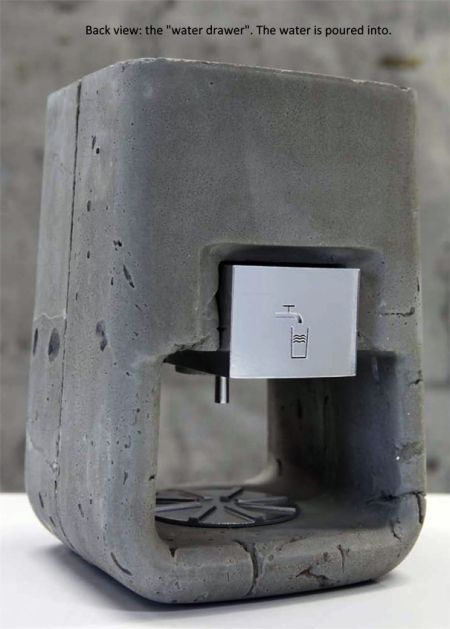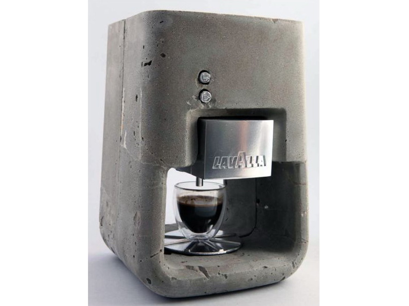厨房用具和日常用品大都是塑料或金属质地,建筑用混凝土材质的极其罕见。一位学生突发奇想,用混凝土制作了这款咖啡机。这款咖啡机包含咖啡豆进口、工作指示按钮、注水口和咖啡出口等,可以制作可口的浓咖啡。设计者希望这款产品不仅可以达到装饰作用,还可以获得消费者的喜爱。