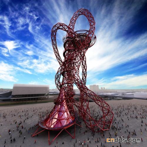 艺术家Anish Kapoor应邀为2012年的伦敦奥运会设计一座高115米的公共艺术作品,该作品名为ArcelorMittal Orbit,将作为奥林匹克运动会的一部分立于伦敦奥林匹克公园,下图是这座建筑的一些效果图。