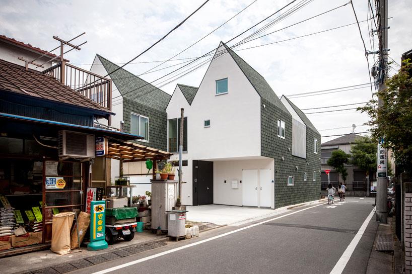 绿色屋面瓦覆盖的日本“housecut”住宅
