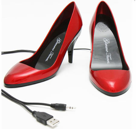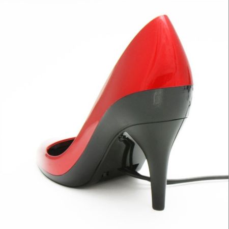 这双靓丽的深红诱惑高跟鞋,其实是一款造型特别的音箱。它采用USB接口进行连接,不仅适用于电脑,还可以用在有USB接口的手机和MP3上。