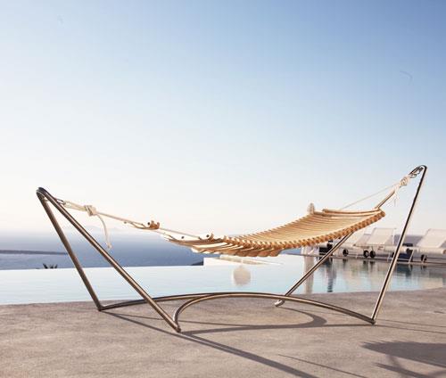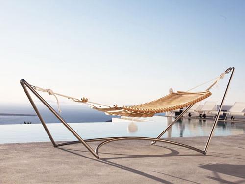 这是一个极其具有时尚感的吊床设计,多文化的城市迈阿密是这个设计的灵感来源,复合的设计意味着它融合代典型的美式摇椅与加勒比海风情。它由胶合板做成,还有可调节的搁脚和可张开的扶手装置,甚至还配套枕头和侧兜,非常适合休闲之用。