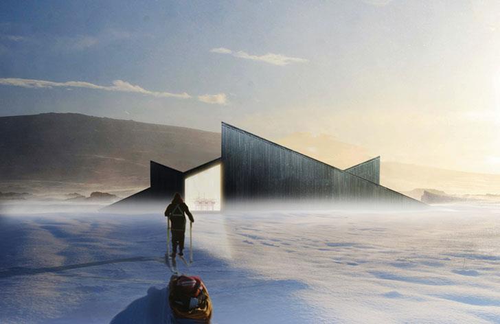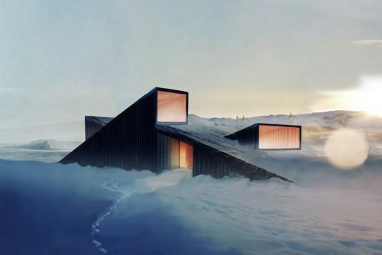 Mountain Hill Cabin设计师:Fantastic Norway位置:挪威这个山丘小屋位于山脉深处,即是舒适的冬季度假村,它的三角形屋顶还可作为滑雪和玩雪橇或其他雪地娱乐设施的坡道。游客要想在冬季抵达这处被冰雪覆盖的度假村只能靠滑雪。房顶与地面呈23度角,设计师加长了屋檐,让屋顶与周围环境更好地结合,也为滑雪者提供方便。山...