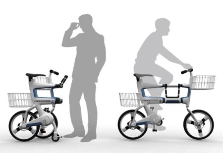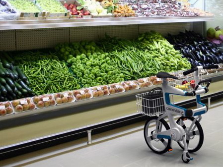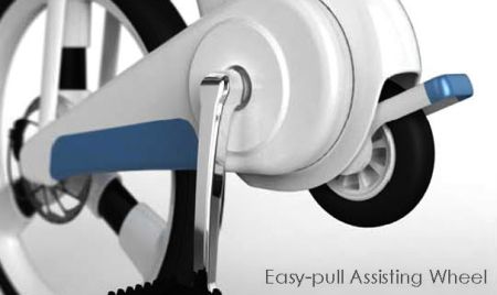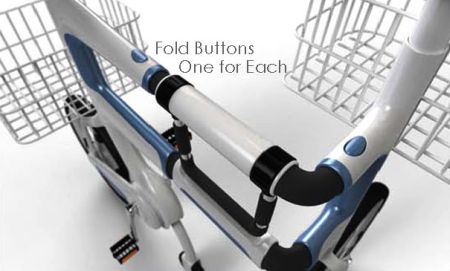 这款折叠车不仅可以通过折叠减小空间占用,而且折叠后还可以当作购物车使用。它的车架部分由三组可转动的结构组成,分别是折叠后的推车把手和辅助小轮。这款方便的设计可以让您在购物时直接将自行车推进超市,不必担心您心爱的自行车会被偷走。