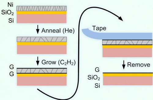 目前麻省理工大学和密歇根大学的研究者们已经找到了生产石墨烯的新方法,通过使石墨烯直接接触在大玻璃片上,该过程适用于按比例增加。这是一份高质量且认真完成的工作,这种直接在非金属上生产石墨烯的方法可用于大的显示屏和触屏,以及一些电子集成器件。
