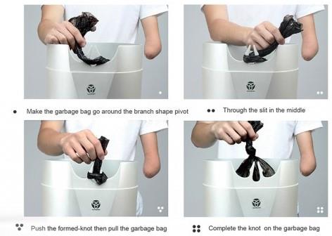 健全的你我肯定很难想象那些不健全的朋友在日常生活中碰到的种种问题。譬如小小的系垃圾袋的日常行为,如果是独臂,或是手指残缺的人该如果系垃圾袋呢?想想真心不是件容易的事。设计师Yijin Chou想到了这个问题,设计的这款垃圾桶就很赞,单手打包也不在话下,只需要熟能生巧的过程。